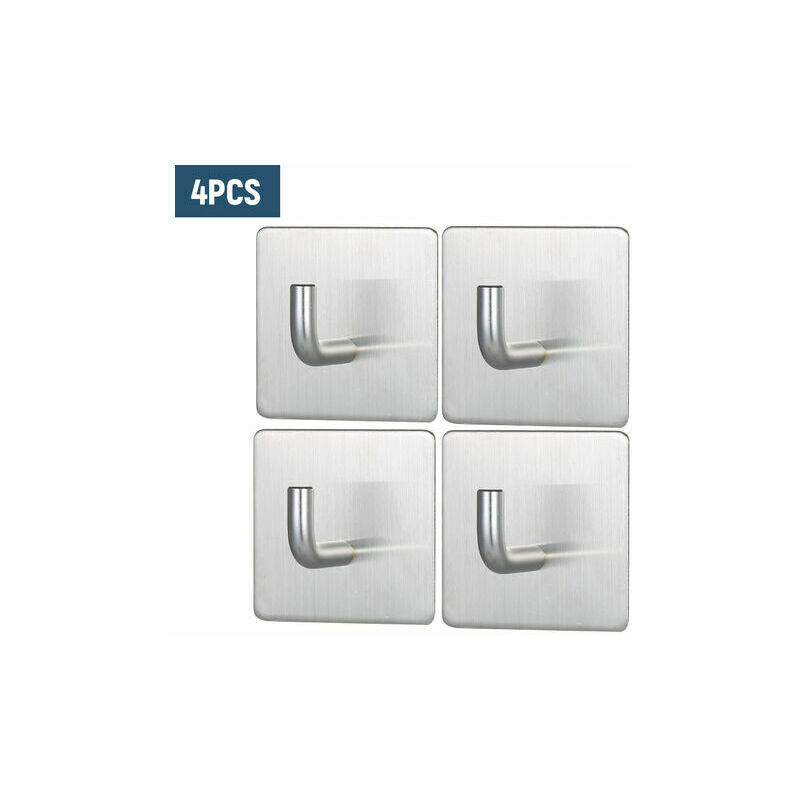 Questa confezione di ganci in acciaio inossidabile include totalmente 4 ganci. Possiedono un aspetto elegante e funzioni pratiche, quindi sono adatti per essere utilizzati nella porta per appendere le chiavi, in camera da letto per appendere i vestiti, in bagno per appendere gli asciugamani, ecc. Possono aiutare a dare alla tua casa un aspetto raffinato. Caratteristiche: Il gancio in acciaio inossidabile color argento è semplice ed elegante. Realizzato in acciaio inossidabile 304 di ottima qualità, questo gancio ha caratteristiche robuste, durevoli e antiruggine e una forte capacità portante, che consente di utilizzarli per caricare oggetti pesanti anche in cucina, bagno, bagno, ecc. Gancio adesivo che termina con una piegatura perfetta e una superficie liscia fornita da una lavorazione squisita protegge tutti voi dai graffi. È facile rimuovere il gancio senza danneggiare la parete. Facile installazione senza chiodi o trapani: basta staccare la pellicola protettiva sul retro del