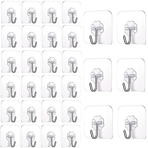 N/U Ganci Adesivi,30PCS Ganci Trasparenti Adesivi,Gancio Cucina,Adatto Utilizzato in Cucina,Bagno (10kg Max)