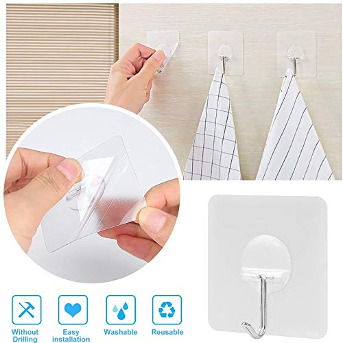Ganci adesivi 6,1 kilogram (max) resistente trasparente riutilizzabile gancio da parete per unghie free, no scratch, impermeabile e Oilproof per casa, bagno, cucina porta parete soffitto