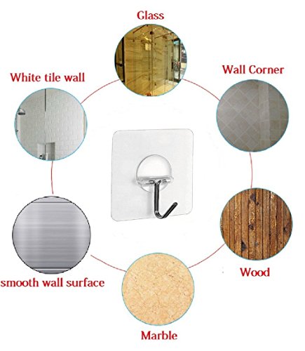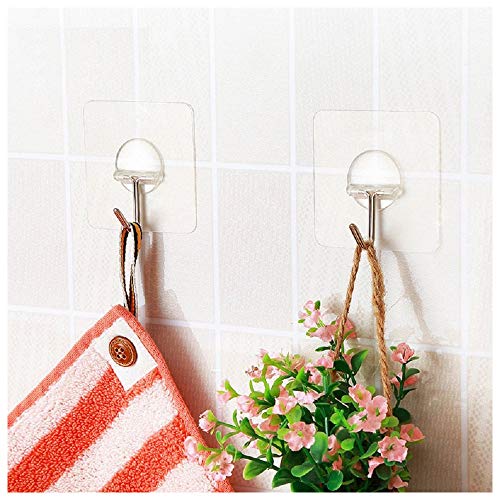 3M Ganci Adesivi Senza Chiodi 10kg Max Ganci da Parete Trasparenti Ganci Resistente per Cucina Gancio Bagno Porta Soffitto (Set di 16)