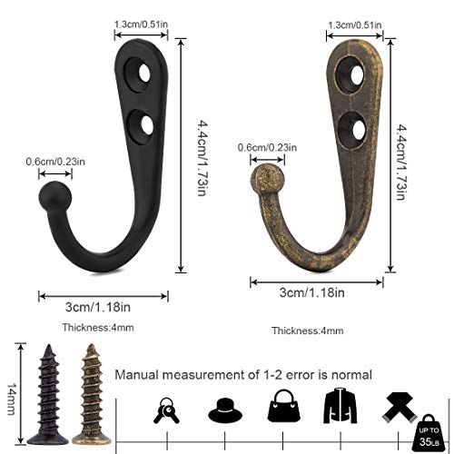 【Dimensioni】- 44 x 30 mm / 1,73 x 1,18 pollici, dimensioni medie, adatto a molti articoli, realizzato in lega di zinco e ferro di alta qualità, duro e durevole, non facile da rompere, erosione e ruggine, questo pacchetto contiene 20 pezzi di muro gancio e 40 pezzi di viti. Ogni gancio è fornito con due viti e può sopportare il peso di ca. 16 kg.