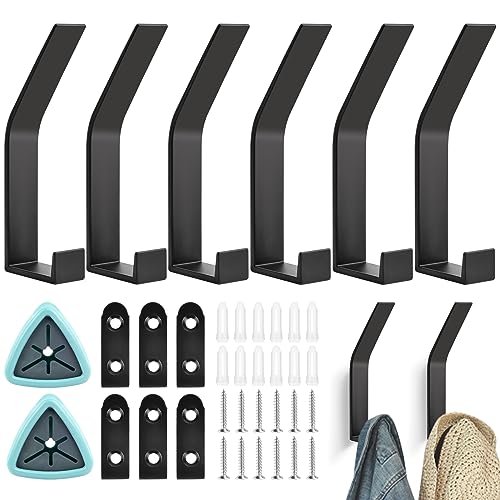 Ganci Appendiabiti da Parete,6 Pezzi Grandi Ganci Doppi e Salvaspazio,Gancio da Parete per Asciugamani,155 mm J Forma Ganci Moderni (Viti Invisibili),Appendiabiti a Parete-Gancio Nero