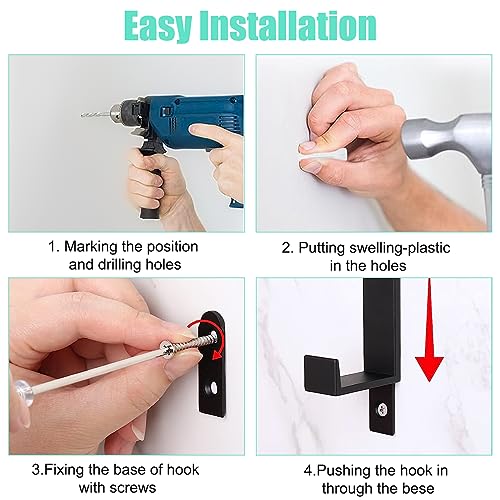 【Grandi Ganci Doppi】L'appendiabiti nero è dotato di ganci a doppio strato, è possibile appendere più cappotti e giacche allo stesso tempo. Più spazio. Il carico massimo è fino a 22 kg. Le dimensioni sono 11,8 x 3,9 x 1,7 cm. Kit di 6 ganci per cappotti, inclusi 6 pezzi di base, 12 pezzi di viti, 12 pezzi di plastica gonfiabile.