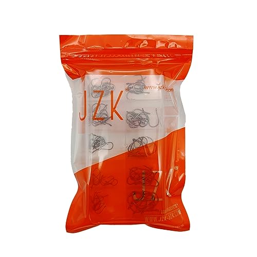 JZK 100 ganci assortiti misura 3 4 5 6 7 8 9 10 11 12, ami da pesca in acciaio al carbonio con occhi, piccoli ami da pesca con barba, ami da pesca a cerchio con scatola di plastica