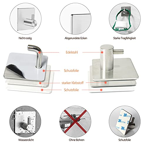 10 ganci autoadesivi da parete per asciugamani, cucina, bagno, ufficio e porte, in acciaio inox, color argento, 2 tipi