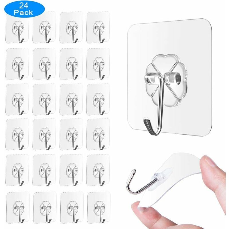 Quantità: 24 pezzi. Forma trasparente: eleganti ganci da parete impermeabili autoadesivi in PVC trasparente trasparente. Il materiale si adatta perfettamente al suo ambiente. Ottimo per il budget. Dimensioni: 60 mm (L) x 60 mm (P) La pellicola protettiva, pulisce le superfici lisce e asciutte, preme saldamente il gancio sul pavimento e rimuove le bolle d'aria con i movimenti di sfregamento: basta installare. Riutilizzabile: basta lavare la superficie dell'adesivo con acqua. Dopo una breve asciugatura, l'asciugacapelli e i ganci adesivi sono stati lavati per l'uso. Universalmente applicabile: le tazze multiuso all'uncinetto, pentole, asciugamani, pomelli, cappelli, cornici per la cucina, il bagno, la camera da letto, l'ufficio, ecc. per appendere tazze, ecc. Set di 24 ganci adesivi per cucina, bagno, porta soffitto, sospensione. 1.