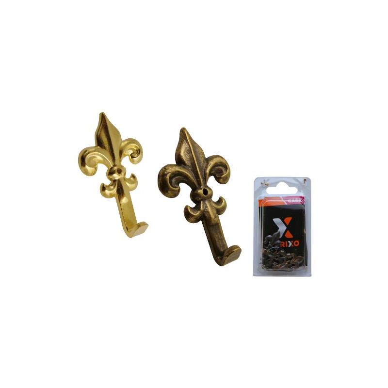 Ganci Brixo Giglio per quadri Gancio in zama ottonata o bronzata, completo di chiodo in acciaio. In confezione blister Finitura bronzo 48 mm. - Blister 3 pz.