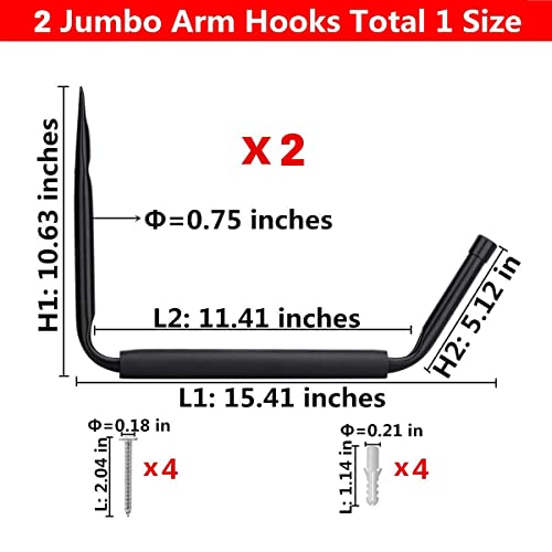 ★MATERIALE DI ALTA QUALITA - I nostri ganci bici portabici da muro garage sono realizzati in tubolare d'acciaio resistente e robusto, verniciato a polvere e resistente alla ruggine. Inoltre, i nostri ganci di stoccaggio per garage a braccio jumbo hanno il protettore del braccio in EVA, che può proteggere perfettamente i tubi d'acciaio.