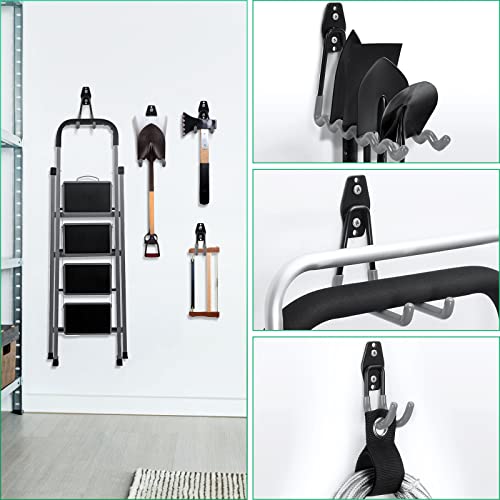 Ottimi ganci per attrezzi: realizzati in acciaio spesso, i ganci per garage sono resistenti e robusti. Il rivestimento in gomma grigia antiscivolo aderisce agli oggetti, protegge le superfici da graffi o danni e impedisce ai ganci del garage degli attrezzi di scivolare e arrugginirsi. L'acciaio solido non si piega facilmente e può sostenere un bel po' di peso se supportato correttamente.
