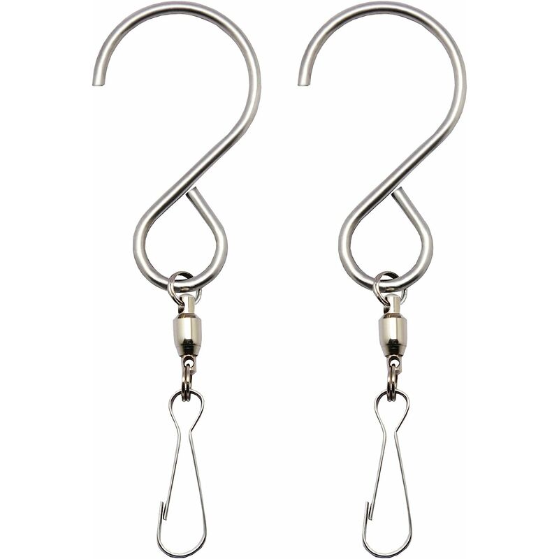 Contenuto della confezione: set di 2 ganci girevoli. Taglia: 9 cm di lunghezza totale. Può supportare fino a 2,7 kg. Acciaio inossidabile resistente al 100% di alta qualità, mai arrugginito, molto resistente e di lunga durata. Può essere smontato per agganciare e agganciare per molteplici usi. Ganci girevoli per appendere girandole, girandole di cristallo, bandiere per finestre e prodotti al dettaglio, cartelloni pubblicitari, calze antivento, vasi di fiori, piante, mangiatoie per uccelli, ecc. Ideale per cellulari 3D e altri che necessitano di girare, girare, girare, ruotare, girare, girare, appendere o visualizzare e non causano problemi di avvolgimento.
