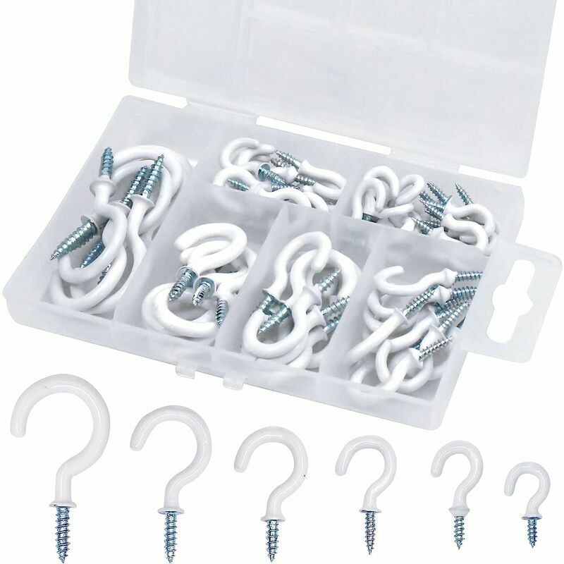 Facile da installare e abbastanza resistente da appendere campanelli eolici, lanterne, casette per uccelli, luci del patio, luci natalizie o altre decorazioni natalizie e decorazioni natalizie.Materiale: plastica e acciaioColore: biancoDimensioni: 1/2 pollice 5/8 pollici 3/4 pollici 7/8 pollici 1 pollice 1-1/4 pollici Nota: poiché questo articolo ha punte acuminate, tenerlo lontano dalla portata di bambini e neonati.Il pacchetto include: 70 x ganci per viti a soffitto