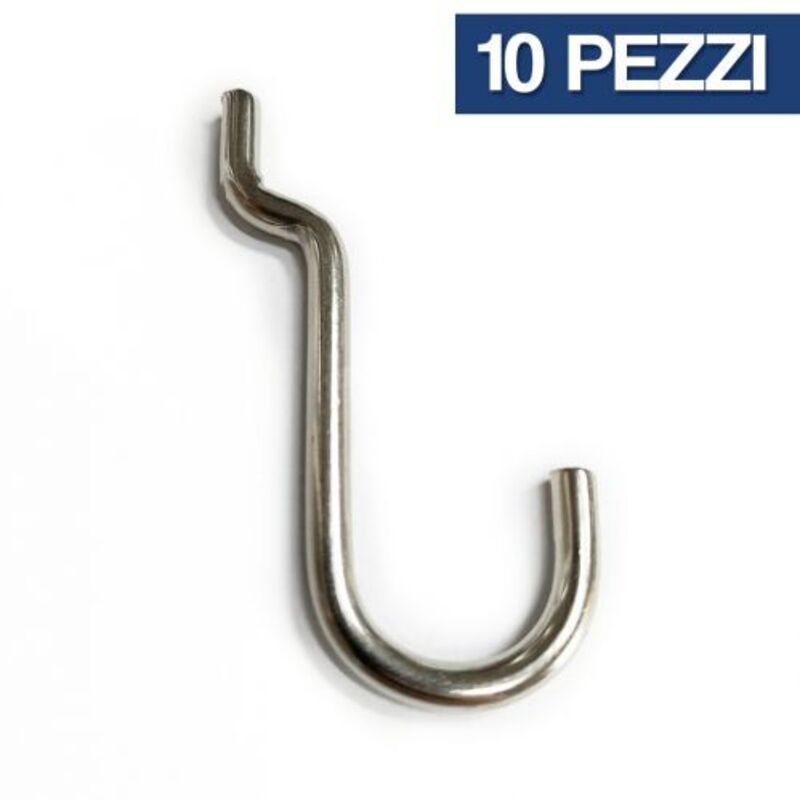 GANCI PER PANNELLI NR. 410 PEZZI Ganci per pannelli forati in acciaio nichelato da cm 4 totali. L'INSERZIONE SI RIFERISCE A 10 GANCI