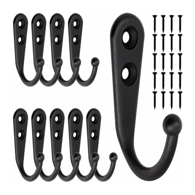 Include 10 pezzi di ganci da parete e 20 pezzi di viti per staffe, ben abbinati per mantenere il tuo piccolo oggetto in posizione e risparmiare spazio. Caratteristiche: il margine è così liscio che non danneggerà i tuoi vestiti o qualsiasi oggetto a cui ti aggrappi. Sono di colore nero con uno stile vintage, che può mostrare il tuo buon gusto. Realizzato in lega di zinco e la vite è realizzata in ferro, materiale duro e resistente, non facile da rompere e in grado di resistere alla ruggine e all'erosione. Puoi utilizzare questi ganci in diversi luoghi, come camere da letto, bagni, armadi, cucine e garage. Può appendere vari oggetti, come collane, cappotti, cinture, borse, gioielli, cesti, utensili da cucina, chiavi e altro ancora. Facile da installare, ogni gancio ha 2 fori, può essere rinforzato con due viti, ganci e viti si abbinano bene, consigliando il montaggio su pali in legno massello o legno. Specifiche: Materiale: lega di zinco + ferro Colore: nero Dimensioni gancio: 44 * 30