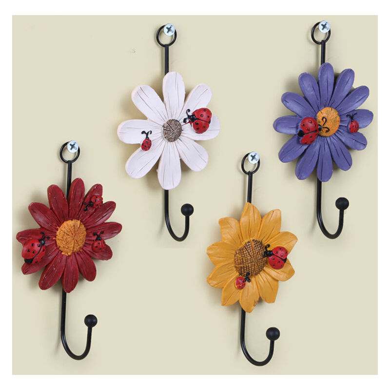 Confezione da 4 ganci floreali: rosso, giallo, viola, bianco. Aggiunge un tocco unico e affascinante, appendi cappotto, cappello, asciugamano o borsa. Facile da montare su qualsiasi parete mediante viti e tasselli (non inclusi). Il fiore è in poliresina e il gancio è in metallo. Il robusto gancio in metallo nella parte inferiore di ogni appendiabiti da parete presenta un bordo arrotondato e una classica finitura nera. Un bellissimo accessorio per casa, ufficio, giardino, terrazza e gazebo per tutte le stagioni