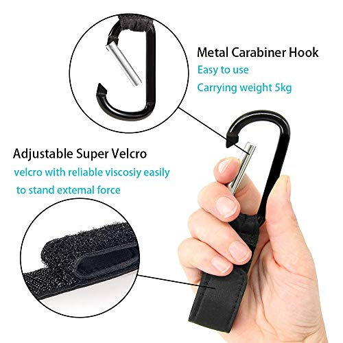 【Gancio per passeggino】 I nostri ganci sono realizzati con nastro in velcro extra resistente di qualità professionale per afferrare saldamente la tua carrozzina, con un moschettone metallico da 6 cm, ogni clip può contenere fino a 5 kg.