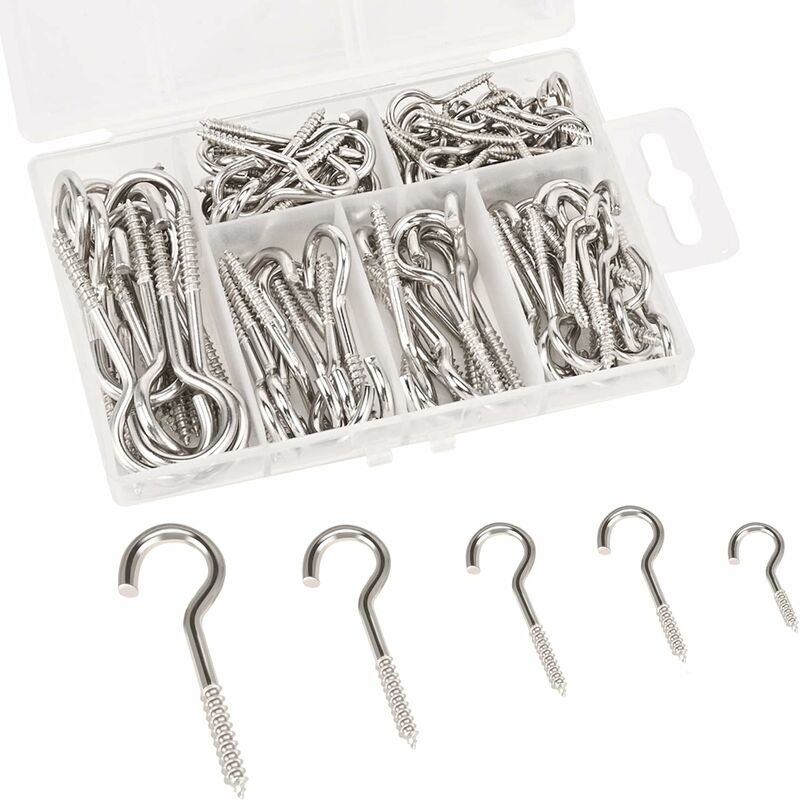 Colore come mostrato Dimensioni: 11,9 x 8,3 x 2,6 cm Peso: 300 g Installazione semplice - Viti profonde e affilate per una facile installazione e una lunga durata. La superficie liscia delle viti assicura un bell'aspetto. Le punte acuminate mordono il legno in modo rapido e semplice, comodo per te. 【Ampia applicazione】 - Adatto per interni ed esterni. Un buon assortimento di ganci a vite per casa, ufficio, posto di lavoro e bar interni ed esterni può appendere tazze, chiavi della tazza e altri elettrodomestici. Può essere utilizzato anche per appendere piante, vasi, lampade, tende, casette per uccelli, ecc. 【Conservazione】 - Tutti i ganci a vite sono collocati in una scatola trasparente. Puoi conservare queste 5 taglie separatamente senza preoccuparti che si confondano.