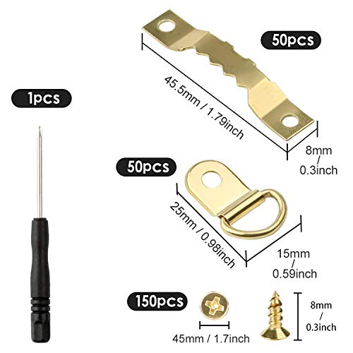 Contenuto della confezione: 251 ganci e chiodi, inclusi 50 ganci per quadri, 50 anelli a D, 150 viti, 1 cacciavite da 3 mm, 1 scatola