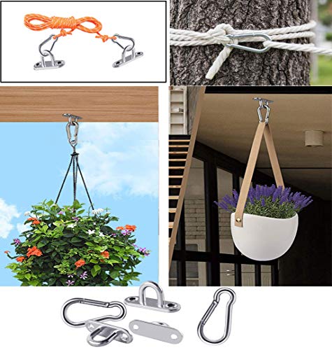 Kit Ganci da Soffitto Ganci da Parete 4 Placche a Occhiello in Acciaio Inossidabile e 4 Moschettoni per Tende da Sole, Corde Decorative e Reti, Attrezzature da Esterno per Interni, ECC.
