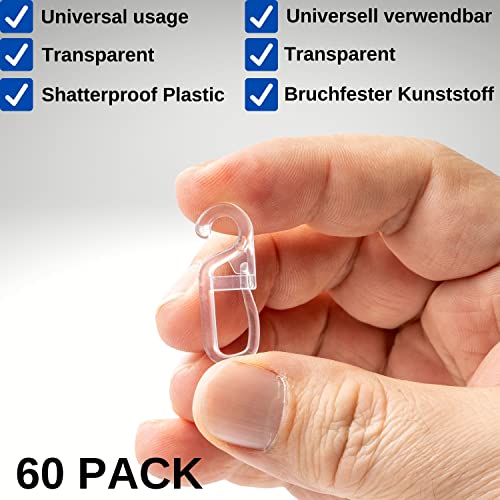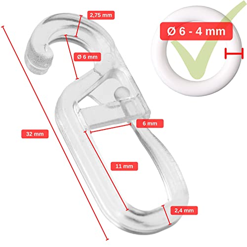 ✅ [CONSEGNA] Gancio per tende 60 x 6 mm per bastoni per tende, Trasparente, per bastoni per tende a muro con anelli per tende fino a Ø 6 mm, per anelli Ø 6 mm, 32 x 11 mm esterno, 11 x 7 mm interno, gancio per pieghe.