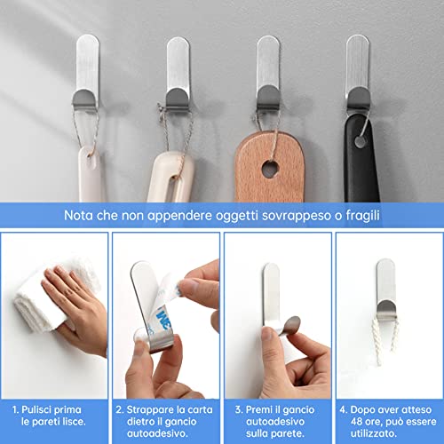 ✅【Ganci Adesivi Cucina Bagno】 Gancio autoadesivo in resistenti acciaio inossidabile 304 di alta qualità che non la ruggine. Il materiale in acciaio inossidabile garantirà la durata dei ganci da parete. Adatta per luoghi umidi come doccia, cucina, bagno e vetro, pavimenti in legno e marmo.ecc.