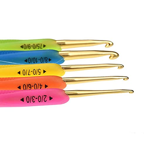 Set di 5 ganci per uncinetto a doppia testa in alluminio con impugnatura ergonomica in gomma TPR morbida per lavori a maglia fai da te (colori casuali)