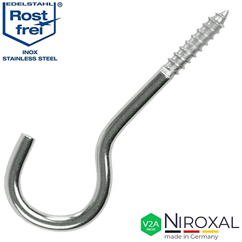 Gancio a vite in acciaio inox da soffitto con vite V2A, gancio in legno, A2, semiaperto, antiruggine, 4,8 mm, spessore 65 mm, lunghezza 10 pezzi