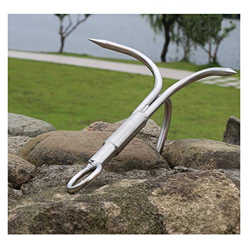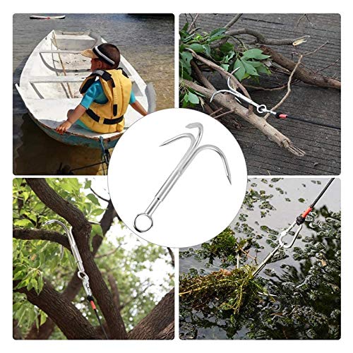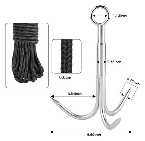 Gancio di ancoraggio KAYAK con ganci in acciaio inox a 3 artoni in acciaio inox, grappling gancio moschettone arrampicata con corda in nylon da 20 cm (65ft) per recuperare ancoraggio, escursionismo al