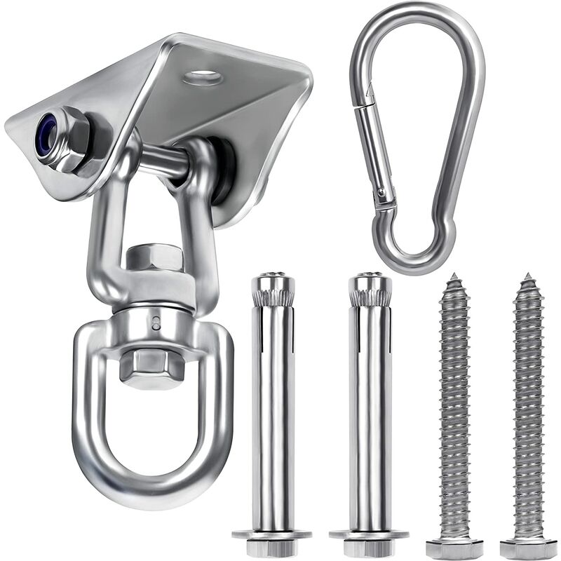 Gancio per impieghi gravosi: questo gancio da parete e soffitto in acciaio inossidabile è perfetto per appendere attrezzature pesanti e tappezzeria. Il nostro set include 1 gancio girevole, 1 gancio fisso, 2 viti e 2 viti ad espansione. Le dimensioni della scheda madre sono L7 x P4 x H9,8 cm, mentre le dimensioni del gancio sono L8 x L3,9 cm. Guarda l'immagine a schermo intero. Acciaio inossidabile 304: questo anello in acciaio inossidabile 304 premium è molto resistente e resistente. Il materiale è molto resistente, non tossico ed ecologico. L'acciaio inossidabile non arrugginisce e non resiste alla corrosione, questi supporti per amache possono essere installati all'interno o all'esterno e sono ideali per un uso professionale per lunghi periodi di tempo. Sono facili da pulire e possono essere installati e rimossi più volte. FACILE DA INSTALLARE: Ogni gancio per sacchi di sabbia è forato con 2 fori per fissarlo facilmente al soffitto o alla parete. Le viti a testa esagonale (viti ad