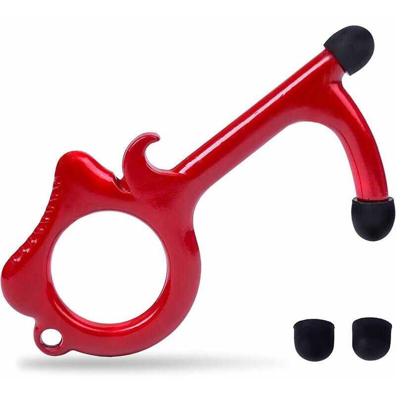 Gancio apriporta anti virus? Il materiale del gancio apriporta senza contatto è in lega di zinco Il design antimicrobico può rallentare o uccidere la diffusione di microrganismi, inclusi i batteri Le leghe sono comunemente chiamate [antimicrobiche] e possono inattivare i batteri. germi rispetto all'acciaio e alla plastica ?Design ergonomico? Lo strumento apriporta touchless ha il design perfettamente comodo e facile da trasportare, lo strumento touch in ottone con bordi curvi lisci funge anche da tutti i tipi di strumenti, come apribottiglie e stilo touch screen ?Facile da usare Usa? Maniglia apriporta touch sicura, comoda e facile da usare, le dimensioni sono L83 x L37 x P6,4 mm che puoi attaccare al tuo portachiavi per portarlo ovunque tu vada - Questo caldo regalo farà sapere alle persone che tu sono molto attenti a loro ?Strumento senza contatto? Un'estremità può essere utilizzata come? Gancio per porta? e l'altra estremità per toccare o azionare oggetti e dispositivi, strumento