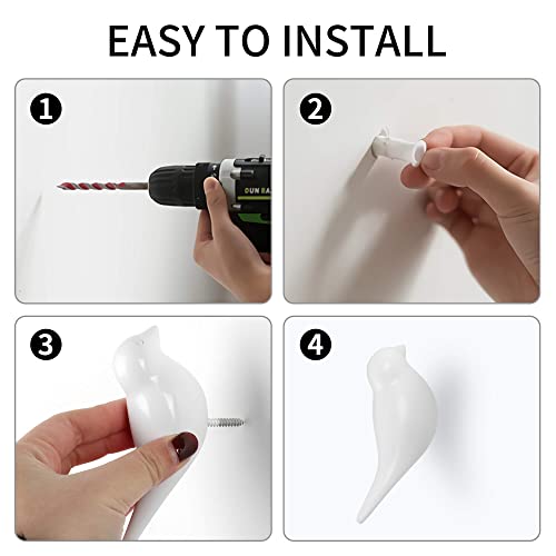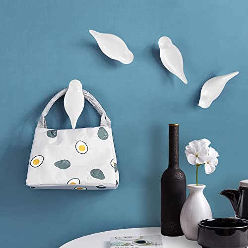 Gancio a muro bianco a forma di uccellino/Supporto da Parete Multiuso per Chiave per Asciugamano e Cappello, Set di 5