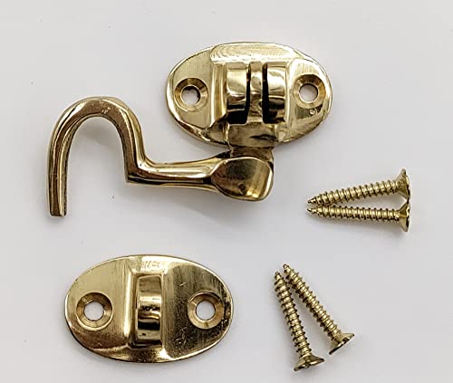 Gancio per cabina in ottone da 2 pollici in ottone con gancio e occhiello silenzioso per porta con viti, gancio silenzioso per cabina per capannone, in varie finiture, confezione da 1.