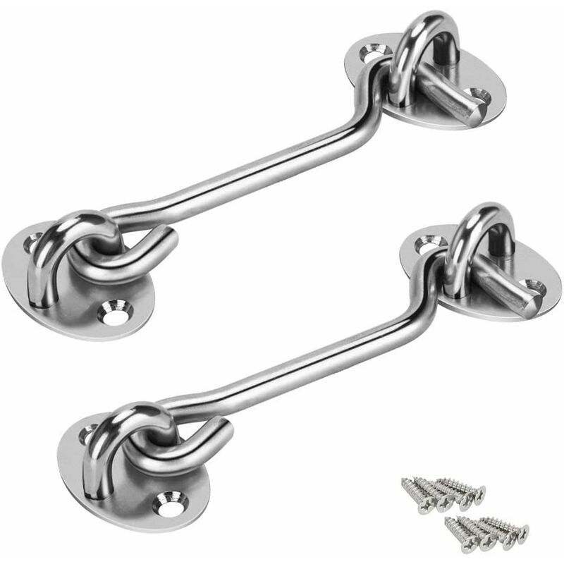 La confezione include: 2 ganci per cabina, 4 chiusure, 8 viti. Aggiungi una funzione di privacy a qualsiasi porta hardware per porte scorrevoli. È facile da installare e viene fornito con le viti corrispondenti. L'acciaio inossidabile di alta qualità garantisce la sua resistenza alla ruggine e alla vita. Consigliato per porte interne in legno. Ideale per aprire porte, porte, finestre. Materiale: acciaio inossidabile Metodo di installazione: fissaggio a vite La confezione include 2 ganci per cabina 4 serrature a occhiello > 8 viti Per tutte le aperture interne, bagagliaio, armadio o armadietto per aumentare l'intimità Usa il gancio dell'intimità sulla porta: collega il gancio dell'intimità alla porta, quindi collegarlo al muro o al nastro decorativo. Chiudi e blocca due ante scorrevoli: usali per chiudere due ante scorrevoli, un armadio o le ante di un armadio. Suggerimenti per l'installazione 1. Per il fissaggio sulla porta e sul muro: installare prima il gancio sulla porta. Quindi