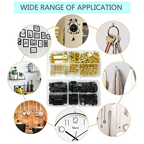 Articoli nella confezione: 251 ganci e chiodi per foto, inclusi 50 ganci per foto con denti, 50 anelli a D, 150 viti, 1 cacciavite, 1 scatola, che possono soddisfare le diverse esigenze