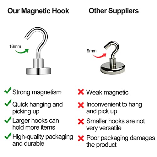 Gancio Magnetico 15 pezzi più 8 Gancio a Occhiello Al Neodimio, Potente Magnete Gancio Neodimio 5.5 KG Diametro 16 mm, Neodimio Magnete Gancio per porte, armadi, soffitti, accessori, ecc