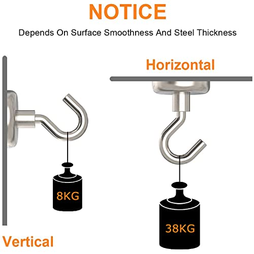 【Forte forza di assorbimento】Ciascun gancio magnetico ha una capacità di carico massima di 18 KG in verticale se il lato magnetico è completamente in contatto con una superficie d'acciaio di pari spessore,montato a più sottile in metallo o laterale alla trazione sarà meno.