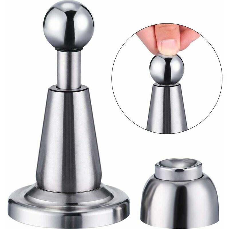 Non montare piccole parti tonde su una porta a camera cava o almeno metterle in un posto fisso. Se si desidera rimuovere la base dalla base a molla magnetica, inserire alcuni cacciaviti sottili nei fori sul retro della piastra di base e ruotare, quindi fissare la base alla parete con le viti. Specifiche: Colore: argento Materiale: acciaio inossidabile Parte più lunga: Altezza totale: 3,6 pollici/ 9,2 cm < br/> L'altezza minima dopo il tamponamento: 2,95 pollici/ 7,5 cm Diametro base: 2,09 pollici/ 5,3 cm Piccolo pezzo rotondo: < br/> Altezza