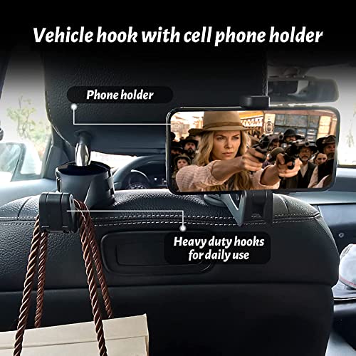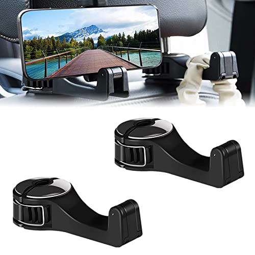 Gancio per Poggiatesta Auto 2 Pezzi Ganci Poggiatesta Seggiolino Auto Gancio Borsa Auto Gancio Universale per Sedile Posteriore con porta Cellulare per Borse Vestiti Ombrelli (Nero)