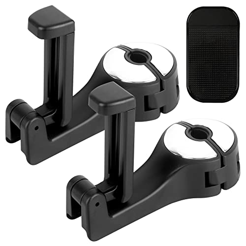 Gancio per poggiatesta auto, 2 pezzi, supporto per poggiatesta auto e 1 tappetino antiscivolo per auto, gancio per auto con rotazione a 360°, supporto per cellulare per borse, portafogli