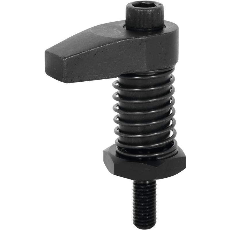 Con vite ribassata. Interamente in acciaio da bonifica e brunito. Uso: Avvitamento diretto in un foro a passo fisso, anche senza svasatura. Per il serraggio salvaspazio di pezzi. Per il serraggio salvaspazio di pezzi. Per: Elemento elevatore n. art. 370077. Dati tecnici Tipo di prodotto Gancio di serraggio Coppia massima, N·m 20 Modello M 8 Fmax., kN 6,7 Altezza H2, mm 14 H1, mm 45 - 55 Lunghezza 1, mm 30 Filettatura M M8