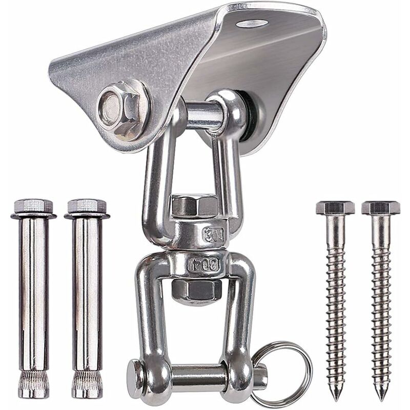 AMPIA GAMMA DI UTILIZZO: per uso interno ed esterno, applicabile a soffitti in cemento e travi in legno, la migliore soluzione di ancoraggio per tutte le cinghie di sospensione e le scarpe da ginnastica di resistenza, kit Hammock Swing, anelli olimpici, corde da battaglia, altalene yoga e attrezzature da boxe. RESISTENZA ALLA CORROSIONE, ELEVATA DUREZZA: anelli in acciaio inossidabile 304 realizzati con materie prime di alta qualità. Nessuna ruggine, resistenza alla corrosione, elevata durezza, ambiente non tossico e non inquinato. Adatto a qualsiasi scena. FACILE DA INSTALLARE: abbiamo preforato due fori per il fissaggio a travi in legno o cemento. Presenta 2 ancoraggi in cemento e 2 bulloni di trazione esagonali e un design unico in un unico pezzo e può essere installato in pochi minuti. DESIGN A ROTAZIONE A 360 °: il design innovativo rende l'uso più flessibile e può essere utilizzato più ampiamente, come aree gioco, altalene, altalene del portico o altalene dell'amaca. COSA