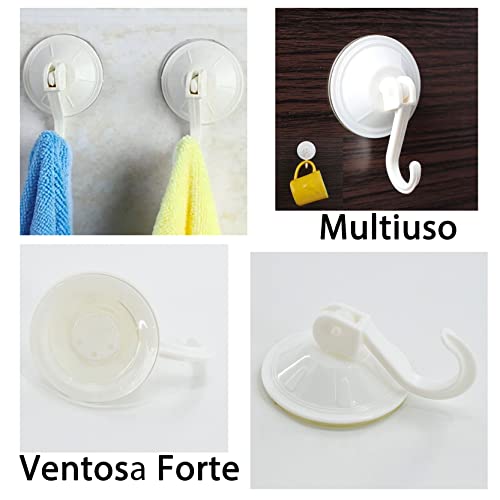 Gancio a Ventosa da 4 pezzi,Ventosa Forte, Colore Bianco, Ideale per bagno,cucina,soggiorno, Ottimo per Ceramica Vetroe tutte le superfici lisce