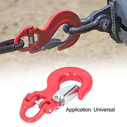 Gancio per Fune per Verricello, Gancio per Chiavistello di Sicurezza Gancio a Cerniera per Rimorchio per Argano Rosso 2T Carico in Acciaio 80 Universale con Chiusura di Sicurezza per Impieghi Gravosi
