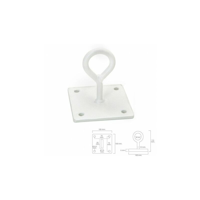 Gancio Wolfpack con piastra multiuso chiusa - Piastra: 100 x 100 mm. - Spessore piastra/gancio: 6/8mm. - Colore bianco.