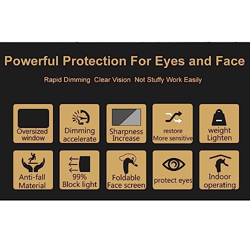 Tecnologia di commutazione automatica: il solare per saldatore combina 4 sensori di alta qualità. Il design della tecnologia di auto-oscuramento consente agli occhiali di protezione auto-oscuranti del di saldatura di rilevare e rispondere rapidamente, proteggendo gli occhi da scariche improvvise '.