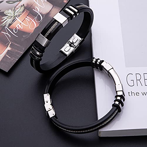 GANMFOYC Bracciale da uomo, Bracciale regolabile da uomo Bracciale in silicone Bracciale in acciaio inossidabile (Tagliatelle d'argento)