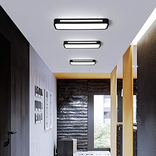 GaoHX Moderno 15W LED plafoniera Rettangolare Nero Lampada da soffitto corridoio Cucina Soggiorno Balcone Luminoso a soffitto Metallo Acrilico Paralume soffitto Luce Risparmio energetico, 6000K ∅48cm