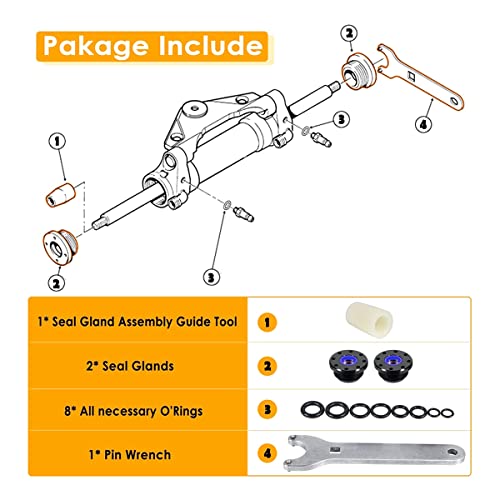 [FUNZIONE]: Kit di guarnizioni idrauliche di ricambio per cilindro idraulico di sterzo perno/montato anteriormente su motore fuoribordo. Un kit di strumenti professionali indispensabile per riparare le guarnizioni dei cilindri che perdono o trasudano per risparmiare più tempo ai riparatori professionisti.