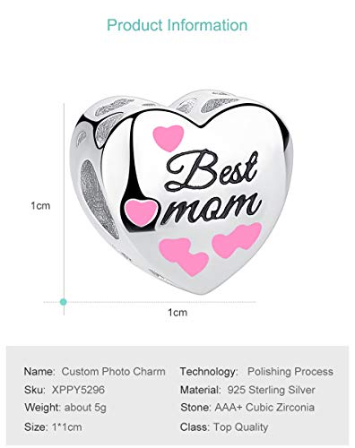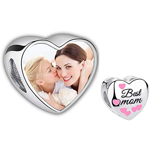 Gaosh Donna Cuore Forma Ciondolo Charms Bead Argento Foto Personalizzata per Bracciale per la Mamma papà Famiglia Regalo per Natale Anniversario di Ringraziamento Compleanno (Best Mom 2, Argento)