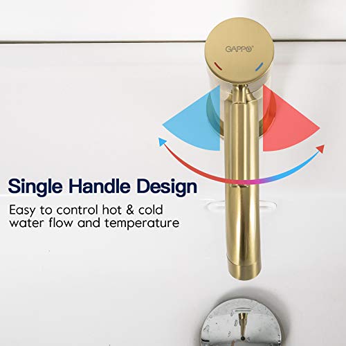 Aspetto elegante e contemporaneo, adatto per lavabo o vasca da bagno, facile da installare. La finitura in oro spazzolato fornisce una protezione superficiale molto resistente, rendendo il rubinetto molto resistente alla corrosione, all'ossidazione e persino ai graffi. La texture liscia al tatto dona una sensazione confortevole.