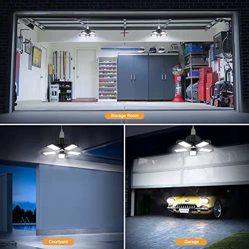 LED luce del garage con 5 pannelli regolabili, Runaup 80W 6500K 8000LM deformabile plafoniere a LED, E27 bianco freddo lampadina per garage, cantina, magazzino, cucina, soffitta (nero)